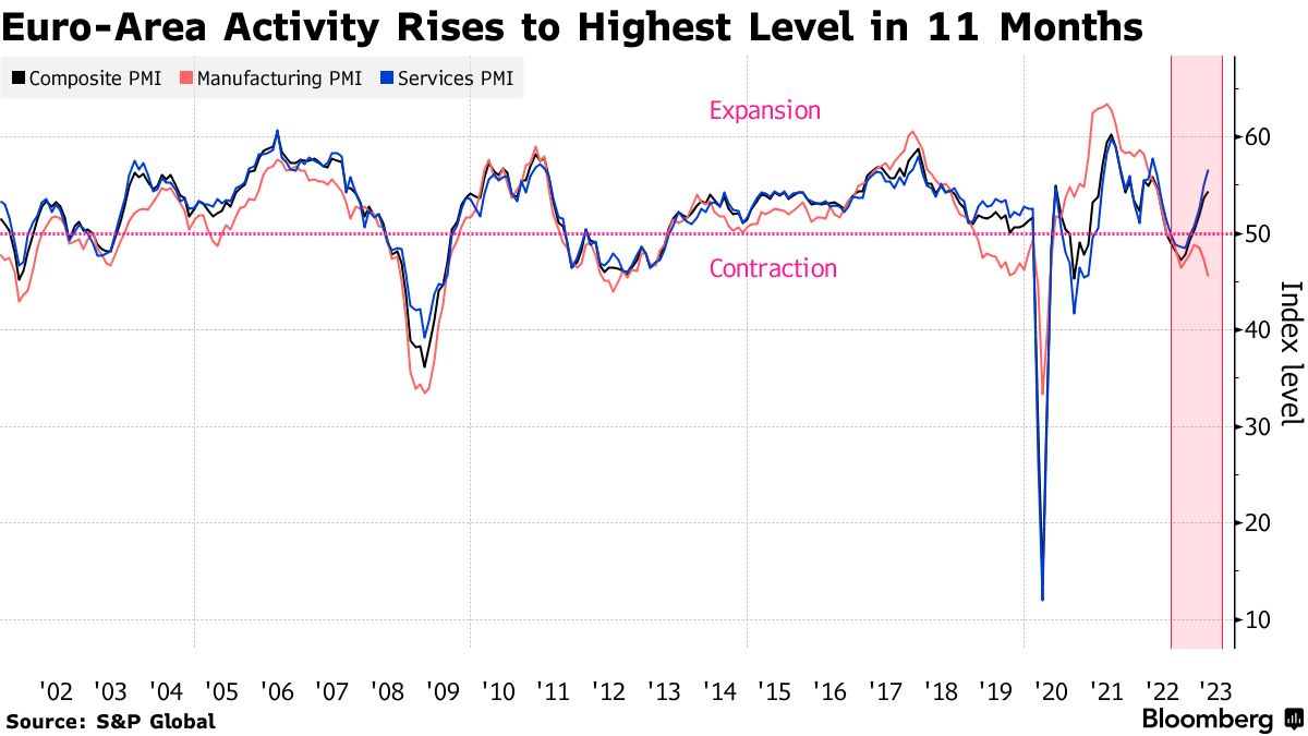 Fuente: https://www.bloomberg.com/news/articles/2023-04-21/euro-area-s-economic-upswing-intensifies-on-resurgent-services cmpid=BBD042123_OUS&utm_medium=email&utm_source=newsletter&utm_term=230421&utm_campaign=openamericas&sref=DPtqrPAJ&leadSource=uverify%20wall