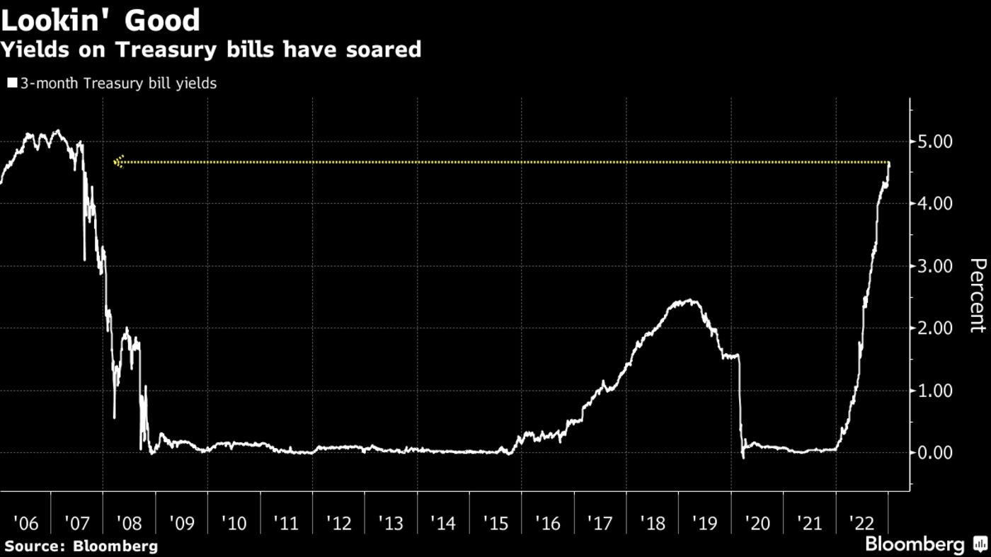 “La Reserva Federal ha mantenido las tasas muy bajas durante un período prolongado de tiempo, están saliendo de su balance general, probablemente estamos entrando en una recesión, ¿qué nos dice eso? Me gusta la renta fija a corto plazo”, dijo en Bloomberg Television Kathryn Rooney Vera, jefa de macro global y estratega jefe de inversiones de Bulltick Capital Markets. «Creo que las letras del Tesoro (4,6 %, 4,7 % de las letras del Tesoro a 3 meses) son bastante atractivas si se comparan con la rentabilidad por dividendo en el mercado de valores».