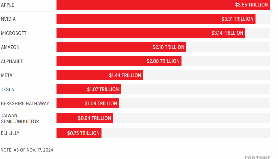 10 empresas más grandes en las bolsas de valores de EE. UU. por capitalización de mercado