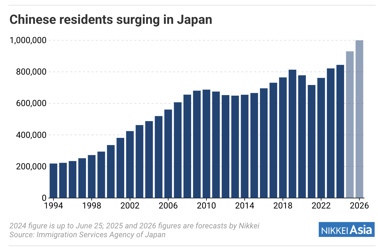 The presence of Chinese migrants in Japan is more prominent than ever before. With the relaxation of visa requirements, migration from China has expanded, offering opportunities not only to the wealthy but also to the middle class. By 2026, the number of Chinese residents in Japan is expected to exceed 1 million.