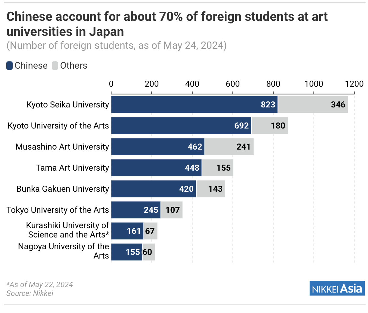 Chinese students now constitute approximately 70% of all international students at Japanese art schools.