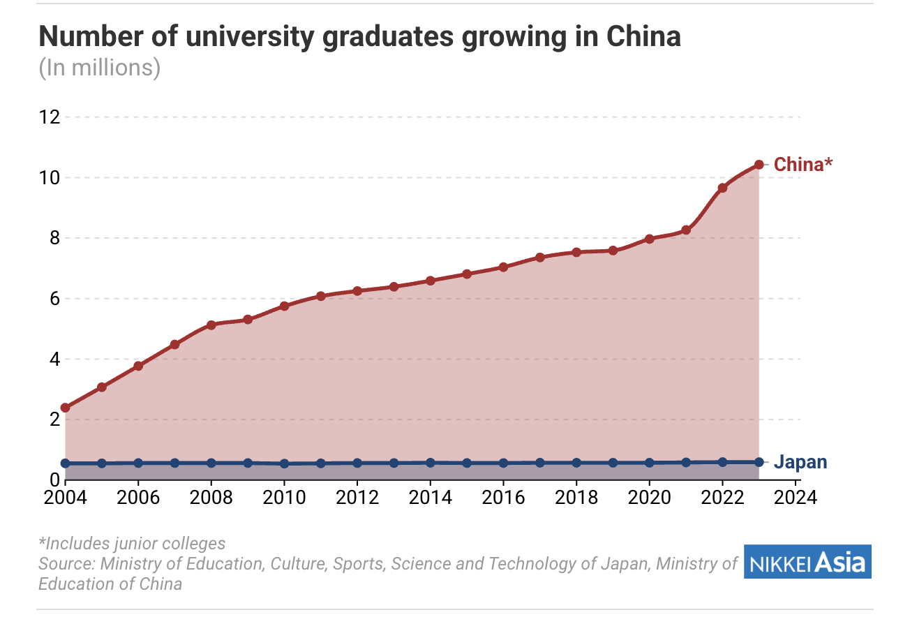 The allure of studying in Japan is reaching beyond art colleges as well. In China, where the economy is sluggish and a sense of stagnation prevails, rising unemployment rates have left many young Chinese searching for new opportunities, and a growing number are considering pathways to Japanese «graduate schools» and residency in Japan.