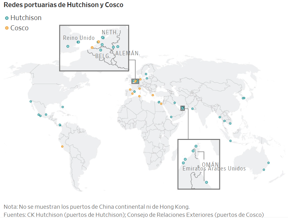 China está presionando para que la empresa estatal Cosco sea un socio y accionista igualitario de los puertos junto con BlackRock BLK 2,14 %aumentar; triángulo verde que apunta hacia arribay Mediterranean Shipping Co., operadora de portacontenedores, según personas familiarizadas con las negociaciones. BlackRock y MSC llegaron en marzo a un acuerdo preliminar para la compra de los puertos, valorado en casi 23 000 millones de dólares .